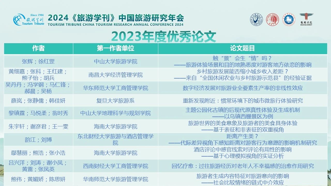 非常荣幸《数字经济发展对旅游业全要素生产率的非线性效应》一文被评为《旅游学刊》2023年度优秀论文。