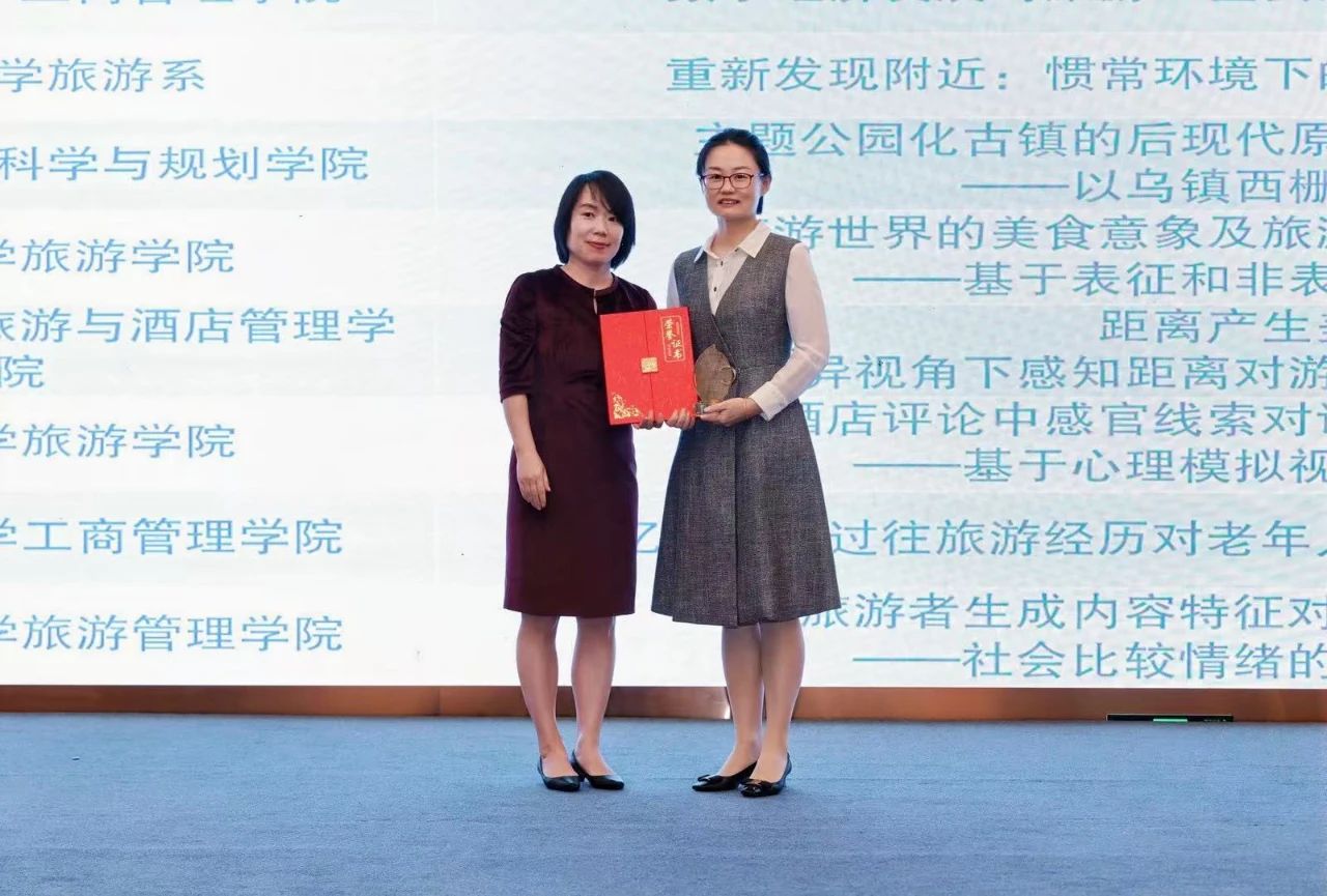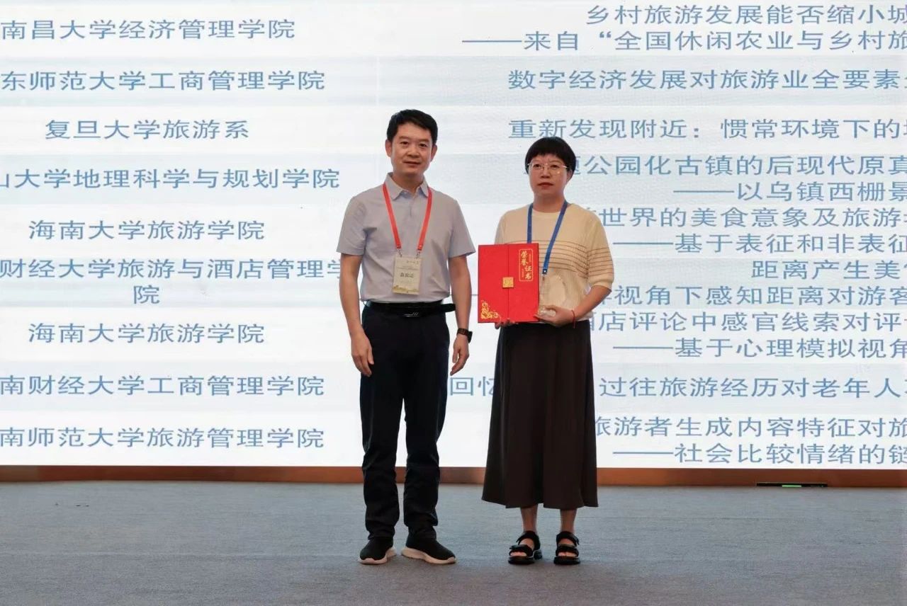 《旅游学刊》编委、复旦大学旅游学系张朝枝教授为获奖者吕兴洋颁奖