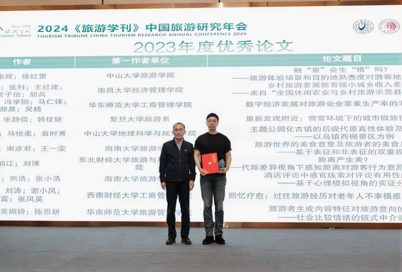 非常荣幸我和徐红罡老师合作的论文获得了《旅游学刊》2023年度优秀论文奖。