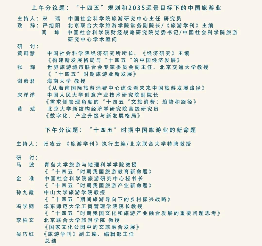 “十四五”时期,对中国和世界来说都是一个特殊阶段。于世界而言,是百年未有之大变局,经济格局、政治格局、贸易关系、国家关系、地缘政治、科技革命都面临新的挑战和变化,尤其是新冠疫情带来二战以后最大的冲击,正在深刻而全面地改变着经济运行和社会发展。于中国而言,我们正处在全面建成小康社会后向基本实现社会主义现代化迈进的关键阶段,是两个百年的历史交汇。在这样一个特殊的时间节点,我们要思考“十四五”时期国民经济朝什么方向走、旅游业应该如何发展等问题——我们总提到的新格局是什么样的格局,在这样的格局背景下旅游业会有哪些新变化或新命题。对这些问题的思考与回答,不仅是实践的需要,也有很深的学术含义。为此,《旅游学刊》和中国社科院旅游研究中心联合组织这次学术研讨会。特别感谢学刊编辑部尤其是吴巧红老师,在会议组织方面做了大量工作。