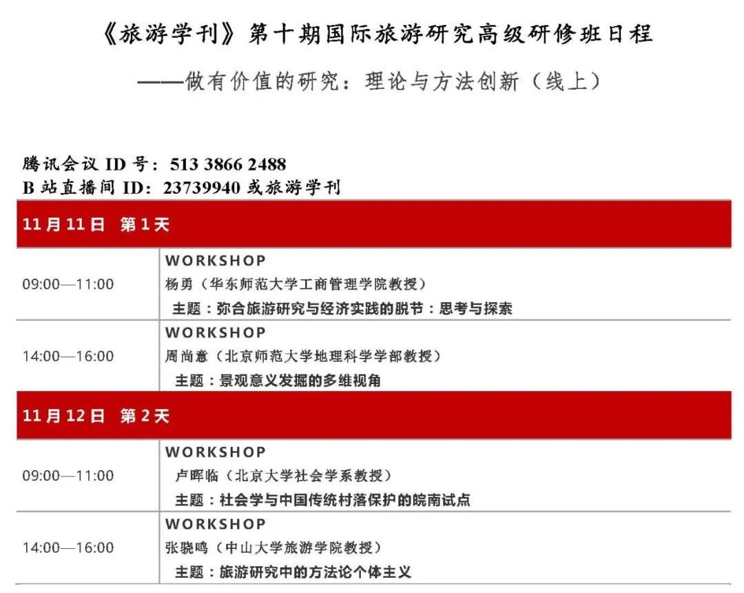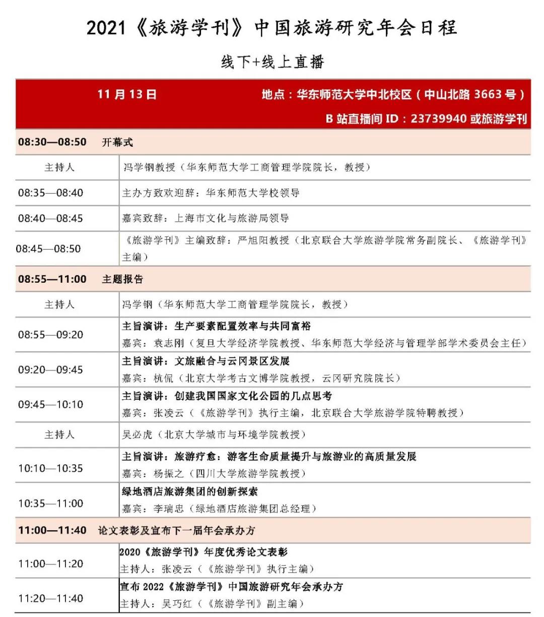 “2021《旅游学刊》中国旅游研究年会”将于2021年11月11—14日召开,会议将以线下+线上直播的方式进行。欢迎关注《旅游学刊》B站官方账号(直接扫描下方二维码)观看直播。