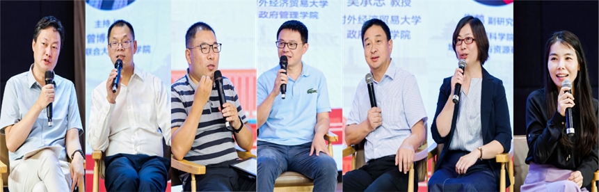 圆桌论坛环节由北京联合大学旅游学院曾博伟教授主持,北京市文化和旅游局资源开发处负责人张靖、国研经济研究院执行副院长黄斌研究员、中央财经大学文化与传媒学院副院长戴俊骋教授、对外经济贸易大学政府管理学院吴承忠教授、北京联合大学旅游学院副院长孙业红教授、中国科学院地理科学与资源研究所朱鹤副研究员6位嘉宾参与,围绕“中轴线遗产旅游创新发展”主题开展两轮对话。