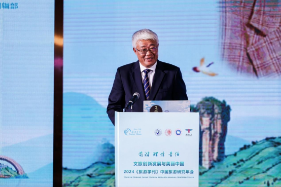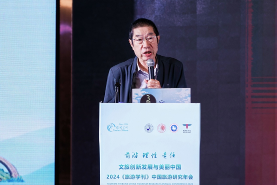 中国旅游协会旅游教育分会会长保继刚教授发表致辞,对2024《旅游学刊》中国旅游研究年会的顺利召开表示衷心的祝贺。保继刚教授讨论了全球旅游业的复苏情况和中国旅游业的战略地位,同时强调了旅游教育面临的挑战和机遇。随后,保继刚教授回顾了中国旅游发展的历史阶段,根据不同时期研究价值取向差别,可划分为理想主义阶段、现实主义阶段、理想主义的理性回归并与现实主义相结合的阶段。而改革开放至今,中国旅游供需关系的主要矛盾经历了数次转换,旅游供需关系划分可为4个阶段:观光旅游主导阶段、旅游供需多元化阶段、旅游日常化阶段、旅游供给侧改革阶段。最后保继刚教授强调了理论研究与实践之间的良性互动,并指出了现今旅游研究在理论和方法论上的不足。呼吁旅游研究者实事求是,追求学术标准,专心思考,以期旅游科学研究的春天能够结出硕果。