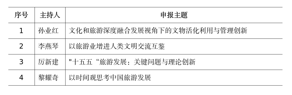 截至2024年10月18日,共收到符合条件的选题申报23个。根据回避原则,《旅游学刊》编委会成立了由9位资深编委组成的评审小组,对笔谈选题申报方案进行评审。经过三轮评审,4个选题获规定的三分之二以上票数(6票及以上)。经主编和执行主编确认,这4个选题入选2025年笔谈主题(见下表)。