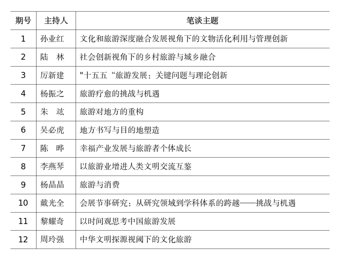 为了更好地践行笔谈作为《旅游学刊》推动政、产、学三界沟通平台的初心,聚焦政、产、学三界共同关注的文旅发展重大现实问题,凝聚更多专家学者、业界精英、管理部门的集体智慧,2024年10月4日,《旅游学刊》发布征集2025年笔谈部分选题的通知,公开征集2025年《旅游学刊》“中国旅游发展笔谈”部分选题4个。
