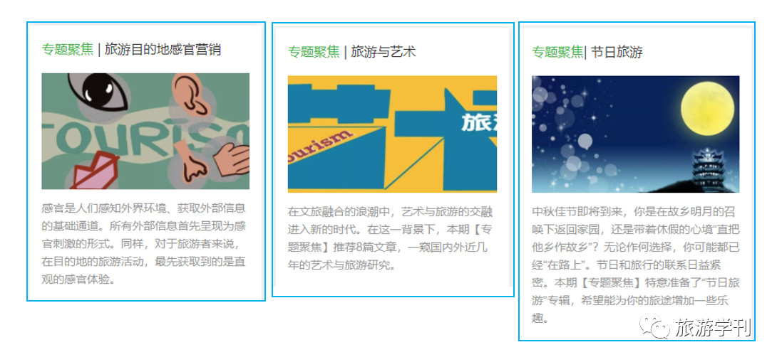 “专题聚焦”栏目的文章主要由志愿者团队进行选题策划,根据当前的关注热点将已经在《旅游学刊》或国内外知名期刊刊发过的论文重新组合,再按照团队的思路编写成文。本栏目的主旨是进一步发挥已有学术论文的价值,并激发更多的思考。与在《旅游学刊》发表的学术文章相比,“专题聚焦”的文章会更加亲民、活泼、形式多样,也更符合微信阅读习惯。